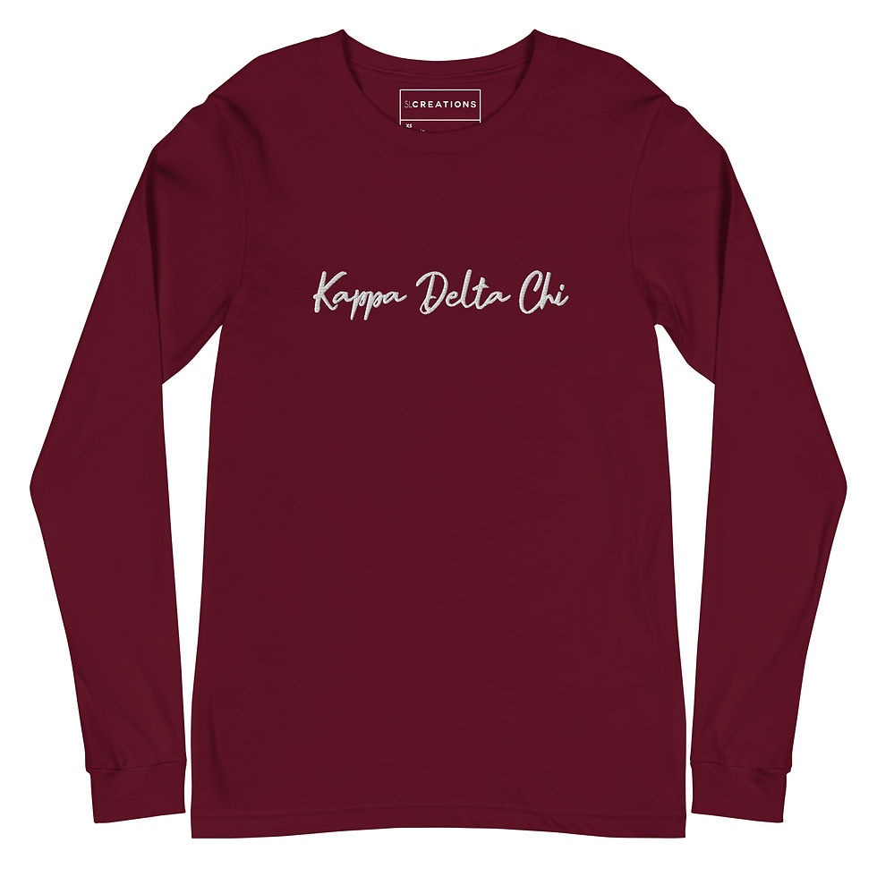 Kappa Delta Chi Embroidered Unisex Long Sleeve Tee - Maroon